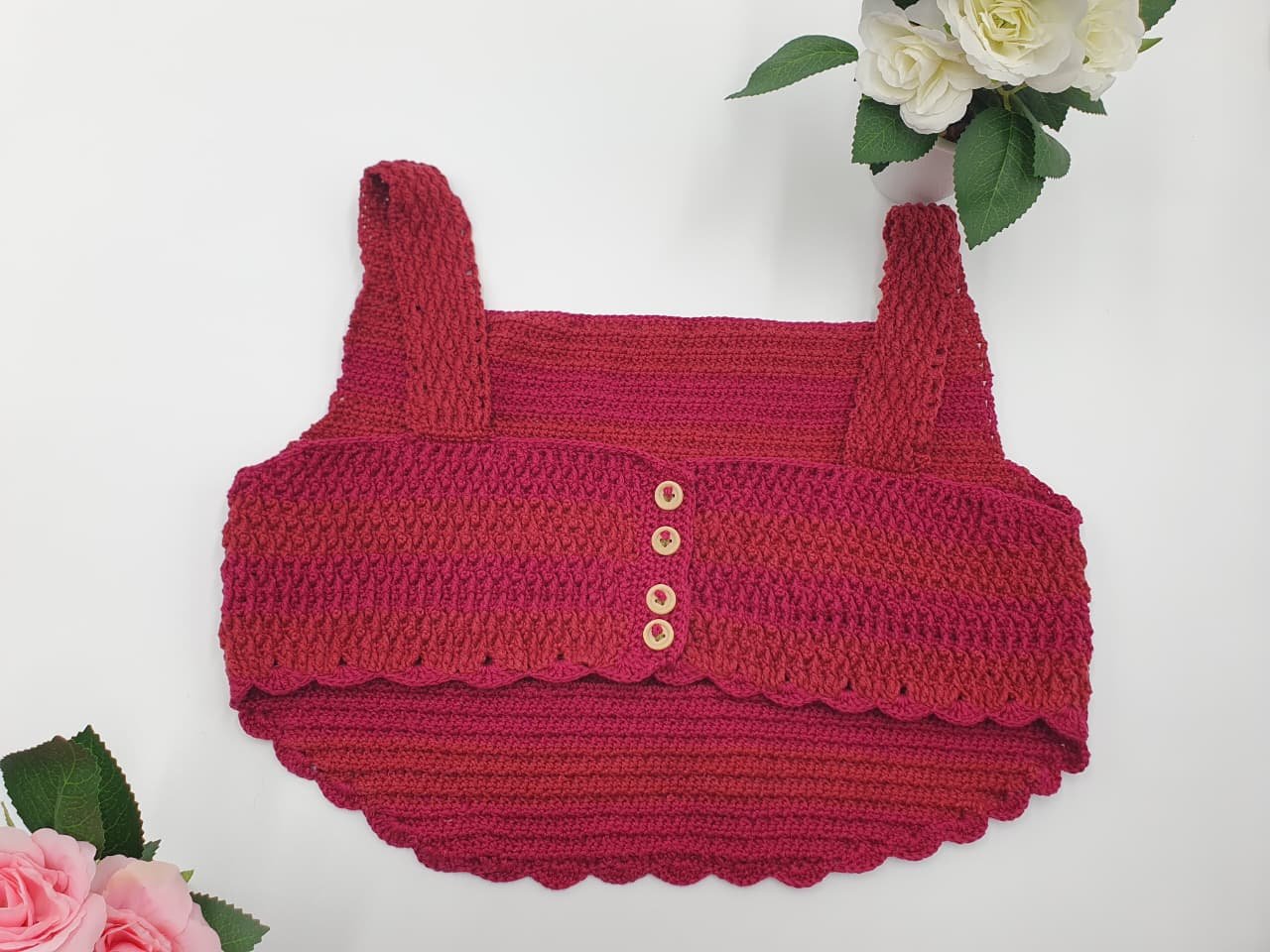 Nota importante: Los accesorios decorativos que se muestran en las imágenes (jarrón de flores) no están incluidos en la venta. El precio corresponde únicamente al top de crochet.