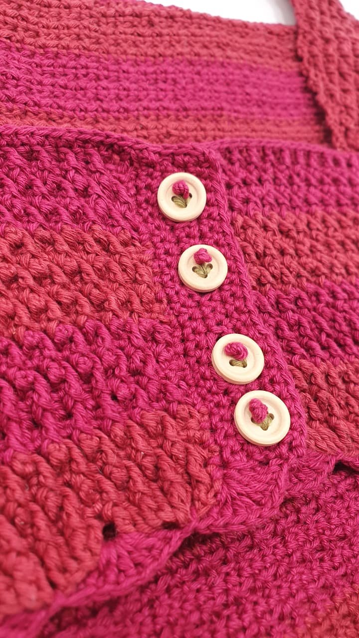- Tejido: Crochet con efecto degradado rosa/fucsia